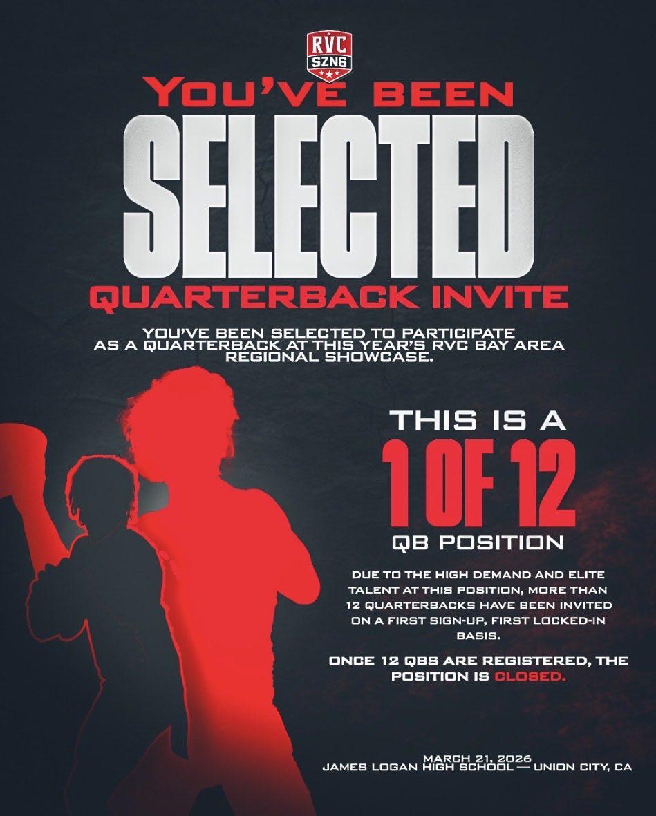 Very excited to compete with the best! Thank you @RVCshowcase for the selection and invite! @SRVHSFootball @BrandonYounger @BrandonHuffman @CoreyNorwood4 @CoachDunnigan8 @Provinggroundsp @EmilyYounger5 @CJacksonWCP @QBHitList @TyHerzog @PGregorian https://t.co/BfIxZZZY60