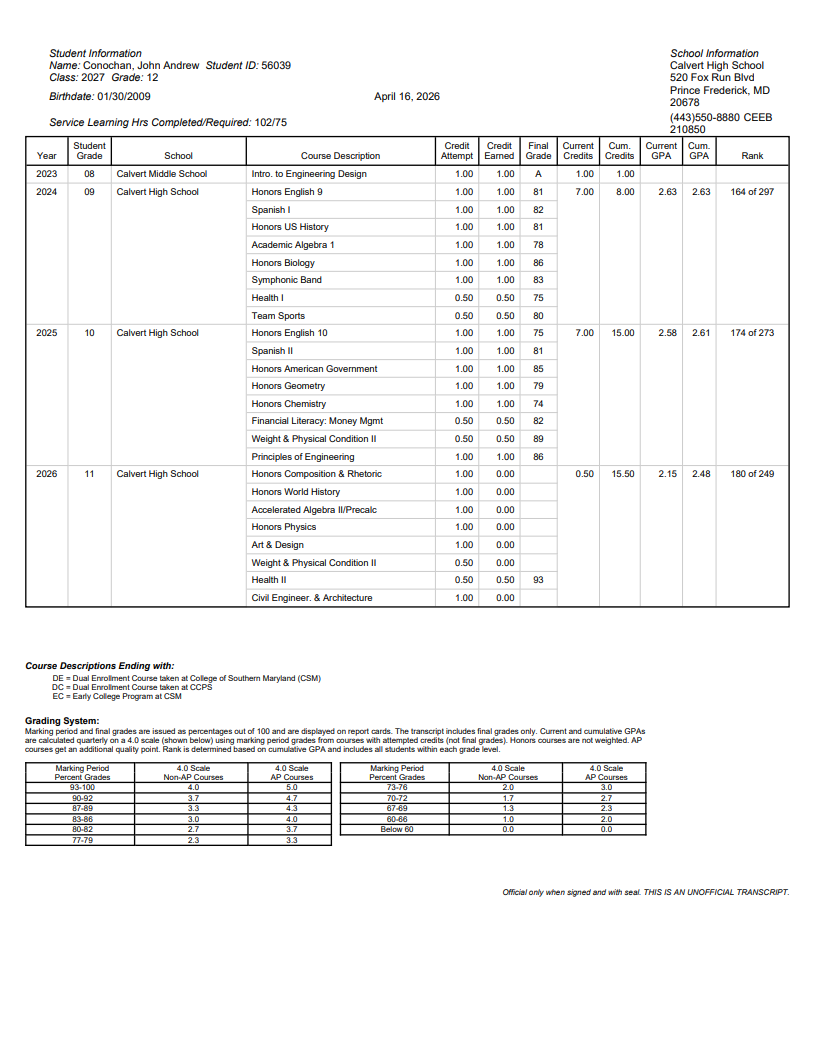 Calvert High School, MD